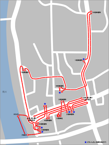 渡御の途中、基本的には神酒所以外の家に立ち寄ることはないが、例外的にどろいんきょに貢献のあった故人の家に立ち寄ることがある。