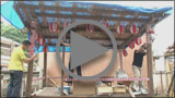 拍子木の紐の付け替え、幟旗の状態確認と防虫対策