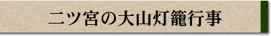 二ツ宮地区では、古くからある家で構成される、農家組合が大山講として大山灯籠行事を行っている。かつては、三十一軒が講に参加していた。講元の家に残る大山講の帳面によると、二ツ宮地区の御師は小川家である。現在は五年に一度、大山講の行事として全員で大山阿夫利神社を参拝し、その年に大山灯籠を立てている。当番が灯籠行事を行う。当番は、五つの地区から一人ずつ選ばれた五人である。毎年三月十五日に、他の講とともにくじ引きにより決められている。