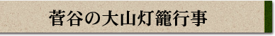菅谷地区は、下組、北中地、新田、上組の四つの組から構成される。大山灯籠行事は、その年の当番組が行っている。当番組は当番中ともいわれ、大山灯籠行事のほか、菅谷地区全体の行事を担当している。大山灯籠は、「灯籠」と呼ばれている。行事は、当番組の班から選出される祭典委員が中心になって行い、平成二十五年度は下組が担当した。